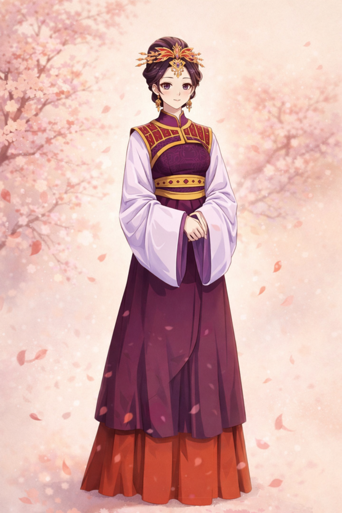 楼蘭妃として人前に出るとき、彼女は素顔が全く分からないほどの厚化粧を施していました。白粉を厚く塗り、眉の形を変え、派手な紅を引く。これは美しく見せるためだけでなく、個人の特定を防ぐための仮面でした。